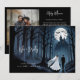 Celebrate an eternal love that defies the darkness with this exclusive card from the Wedding Couple Spooky Forest Toward Haunted Castle collection. The front design captures an unforgettable gothic and romantic atmosphere, showing a couple walking hand in hand through an enchanted forest toward a majestic haunted castle. This piece is perfect for couples seeking a sophisticated dark fantasy aesthetic, evoking an enchanted mystery that will make your wedding announcement truly unique and memorable.