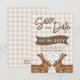 Save the Date card featuring Destei's beige gingham background and two watercolor hare heads facing each other at the bottom. The top of the card reads “Save the Date” with the wedding date prominently displayed in the center. Below, there’s space to add “for the wedding of” followed by the couple’s names.
