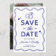 Descanse en el encanto de nuestras extravagantes tarjetas de boda de fecha. Cada carta es una obra de arte que incluye divertidos ilustraciones de doodle azul, bordes de cinta, corazones de amor y anillos de boda. Diseñadas sobre un fondo blanco fresco y personalizadas con tu foto, estas tarjetas son más que una invitación - son el primer capítulo de tu historia boda.