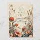 Entrar en un bosque encantado con este caprichoso diseño boda. Con setas rojas de taburete, flores silvestres y detalles botánicos vintage, es perfecto para una celebración rústica o de carpintería. Personalizable completo con tus nombres e información del boda.