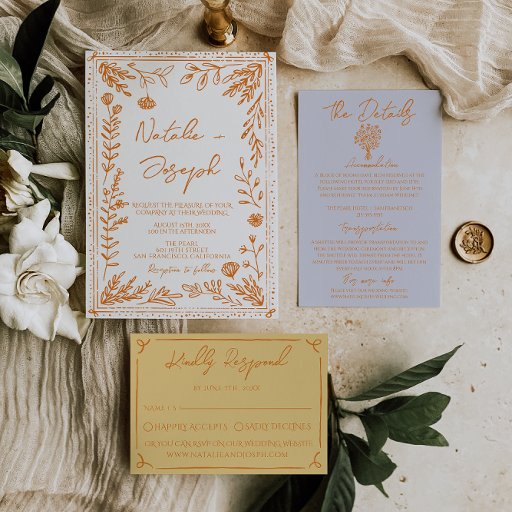 Reserva La Fecha Whimsy Orange Drawn Floral Garden Save The Date