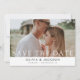 Foto moderna y elegante Guardar la tarjeta de Boda de fecha. La tarjeta de invitación para guardar la fecha incluye tipografía y moda blancas y un diseño sencillo en un fondo blanco al que se puede añadir la imagen personalizada de la fotografía de compromiso.