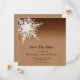 Un hermoso copo de nieve en un fondo de burlap ilustrado acentúa esto Save the Date (Guardar la fecha). Se muestra en el papel básico; sin embargo, recomiendo el peso y la textura del papel de lino para realzar el aspecto de la burrega.