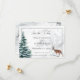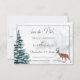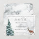 A las novias de invierno les encantará el ambiente sereno de esta carta. Un escenario invernal con ciervos y pinos rodea el fondo nevado. El fondo se transforma en el aspecto nevado. Esta tarjeta es parte de la suite Boda Wreath & Red Cardinal de invierno de tarjetas creadas por Simply Farmhouse Press.