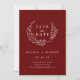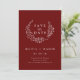 El espantajo mínimo Leafy Wreath Burgundy Save the Date - Save the Date presenta una hermosa corona floral con tipografía moderna. Se muestra en el naranja quemado, sin embargo, puede cambiar fácilmente el fondo a la paleta de colores de la herramienta de diseño. Guardar la fecha formará parte de una colección.