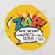 Personaliza con tus nombres y detalles para anunciar la fecha de tu evento especial. Diseño divertido y moderno con temática de arte pop de cómics, perfecto para bodas, despedidas de soltera, baby showers, bautizos, fiestas de compromiso, celebraciones de aniversario, graduaciones, fiestas de cumpleaños y otros eventos especiales durante todo el año. Un diseño genial, moderno y divertido que pone el ¡Zas! y el ¡Pum! en tu día. Diseñado por ComicBookPop© en www.zazzle.com/comicbookpop*