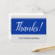Este respetable y elegante diseño de tarjetas postales de agradecimiento incluye el mensaje "¡Gracias!" en la parte delantera, junto con un mensaje personalizado en la parte trasera. Se podría usar para mostrar aprecio a alguien que ha hecho algo bueno.