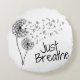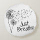Esta almohada redonda de Posh Little Finds proporciona un mensaje elegante y relajante que le dará el tono de su zona de estar. Dandelions soplando en la brisa junto con mariposas juguetonas y un mensaje sin estrés de "Just Breathe" te recuerda que tomes un momento para desahogarte y relajarte en el confort de tu zona de estar.