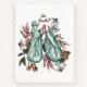 Este cuaderno colorido presenta una pintura acuarela de pulmones en azul acuático rodeada de plantas botánicas de color rosa y amarillo sobre un fondo blanco. Las palabras "Just Breathe" en marrón oscuro aparecen encima de los pulmones. Este mensaje es un buen recordatorio para que sea fácil y lento.