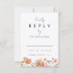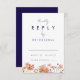 Esta elegante y romántica tarjeta de gabinete RSVP de boda de casamiento azul marino con flores silvestres está diseñada para complementar las invitaciones de boda de otoño con flores silvestres. Con una armoniosa mezcla de tonos otoñales como naranja quemado, terracota, coral, número quemado, amarillo, naranja, melocotón y verduras de tierra, esta carta capta la esencia de una celebración de otoño. Las delicadas flores silvestres acuáticas pintadas a mano evocan el calor y el encanto de la temporada. El fondo azul marino y el blanco le dan elegancia, mientras que los llamativos florales en tonos naranja quemado, madera quemada, coral, amarillo, morado y rosa le dan un toque de belleza a la naturaleza. El elegante y caprichoso guión y la moderna tipografía infunden la carta con sofisticación, lo que la convierte en la forma perfecta de invitar a sus huéspedes a compartir su día especial. Diseñada por la artista Catherine Sweetman, esta tarjeta RSVP mantiene el ambiente íntimo y acogedor de una celebración inspirada en el boho, a la vez que ofrece un formato fácil de personalizar para que sus huéspedes respondan. El diseño atemporal y los colores atractivos garantizan que esta carta sea el complemento perfecto para su invitación a la boda, ofreciendo un toque cálido y sincero a su evento.