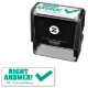 Este diseño positivo de sellos de goma incluye el motivador mensaje de respuesta "¡RESPUESTA CORRECTA!" y el nombre de un educador personalizado. También incluye un icono decorativo de marca de verificación. Podría ser utilizado por un profesor o educador al marcar las asignaciones, para reconocer que el estudiante ha hecho un gran trabajo.