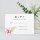 Una tarjeta de respuesta/rsvp de boda moderna, que presenta una flor y una hoja de magnolia en acuarela verde y rosa. La parte posterior es de color rosa sólido. Artículos coincidentes disponibles en este diseño.