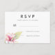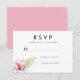 Una tarjeta de respuesta/rsvp de boda moderna, que presenta una flor y una hoja de magnolia en acuarela verde y rosa. La parte posterior es de color rosa sólido. Artículos coincidentes disponibles en este diseño.