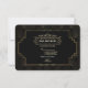 Diseño de tarjeta Art Déco Glam con estilo Gatsby negro. Cuenta con estilo Art Déco, forma de lámina dorada falsa y ornamentos, fuentes vintage hermosas, sobre un fondo art déco dorado. Utilice la herramienta de personalización para agregar su información. Para artículos coincidentes, visite mi Colección de Art Déco Dorado Gatsby de los Años 20.