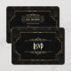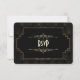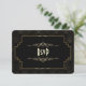 Diseño de tarjeta Art Deco Glam con estilo Gatsby negro. Cuenta con estilo Art Deco, forma de lámina dorada falsa y ornamentos, fuentes vintage hermosas, sobre un fondo dorado art deco. Utilice la herramienta Personalizar para agregar su información. Para artículos coincidentes, visite mi Colección de Estilo Art Deco Gatsby de los Años 20 Dorado.