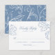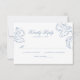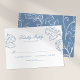 Agregue un toque de elegancia atemporal a sus invitaciones de boda con estas tarjetas de respuesta de boda vintage. Adornadas con ilustraciones únicas de hojas rococó azules en un fondo blanco prístino, estas tarjetas agregan instantáneamente un encanto caprichoso a su papelería de boda. Lo que es más, nuestra plantilla de texto de respuesta es tan elegante como simple de adaptar a sus necesidades, lo que garantiza que sus tarjetas de respuesta sean tan especiales como su gran día.