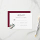Una tarjeta de respuesta/RSVP de boda moderna festiva, que presenta una rama de bayas de acuarela verde y roja. El respaldo es de color burdeos sólido. Artículos coincidentes disponibles en este diseño.