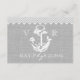 Tarjeta de respuesta de estilo ancla rústica gris y blanca náutica y diseño en zigzag o chevron para complementar la invitación. Diseño de ancla con cuerda y aspecto de arpillera gris en esta única invitación de boda de playa.