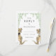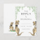 Celebre su amor de una manera única y divertida con esta tarjeta de respuesta para la invitación de boda con dinosaurio T-Rex botánico para novios, que incluye un sobre. Con follaje de eucalipto pintado a mano con acuarela, este diseño combina la belleza de la naturaleza con un toque juguetón de dinosaurio. La obra de arte original de la artista Catherine Sweetman da vida a la adorable pareja de dinosaurios, capturando perfectamente el espíritu de su día especial. La tipografía elegante añade un toque sofisticado, lo que hace que esta tarjeta sea la forma perfecta para que sus invitados respondan. Es un complemento encantador y memorable para su colección de papelería de boda que hará sonreír a todos los que la reciban.