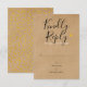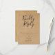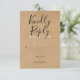 Una tarjeta de RSP elegante con tipografía moderna y elegante sobre un fondo de kraft rústico que se puede personalizar con la información de respuesta especial. El reverso presenta un confeti de corazones dorados elegantes y coincidentes sobre un fondo de kraft rústico. Diseñado por Thisisnotme