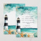 Hermosa tarjeta de respuesta de boda con un faro náutico en blanco y negro, estrella de mar y conchas. Perfecta para una boda. Las palabras se pueden cambiar para adaptarse a sus propios detalles o requisitos