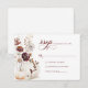 Celebra tu historia de amor con un toque de encanto bohemio este otoño. Nuestras tarjetas de respuesta presentan encantadoras flores silvestres de acuarela rústica, calabazas encantadoras y una elegante plantilla de texto que marca el tono para tu boda soñada. Deja que tus invitados se enamoren de la temporada y de tu evento inolvidable.