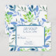 Patrón de hoja de acuarela azul y verde con marco de esquina hendida para respuesta de boda. Todo el texto es editable.