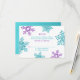 Puedes personalizar fácilmente el texto en esta simple tarjeta de respuesta de boda de invierno con copos de nieve blancos, turquesa (teal) y púrpura violeta. Este diseño de tarjeta de respuesta de RSVP de copo de nieve de invierno tiene un estilo muy moderno con formas audaces y colores elegantes. Púrpura violeta y azul turquesa (teal).