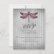 Envía a los invitados una tarjeta de respuesta de Libélula Joyada simple y elegante con tu invitación. El diseño de la tarjeta de respuesta presenta una libélula enjoyada vibrante contra un fondo rayado vintage desgastado. Personaliza con la fecha de respuesta y las opciones de menú. También está disponible papelería de boda adicional con este diseño.