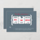 ¡Para todas esas parejas que aman el casino! Aquí hay una divertida respuesta de boda con máquina tragaperras. ¡Agregue la fecha de su boda! Los colores son Gris Acero Oscuro y Rojo. Agregue la fecha de su boda en rojo y diviértase con la segunda fecha - ¡tal vez use la fecha en que se comprometieron o incluso su primera cita! Si desea un esquema de colores diferente, por favor envíe un correo electrónico a paula@labellarue.com antes de personalizar o realizar un pedido para que se pueda crear una nueva plantilla para usted.