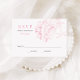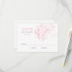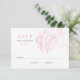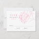Una delicada tarjeta de respuesta adornada con una sola flor de peonía rosa y texto de acento gris sobre un fondo blanco crujiente. El diseño incluye una fecha límite de respuesta, una línea para el nombre y casillas de aceptación o arrepentimiento para facilitar las respuestas de los invitados. Todo el texto es editable para coordinar con el calendario de su suite de boda.