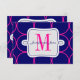 Tarjeta de respuesta de invitación de boda moderna fuchsia rosa y azul marino con inicial de monograma y patrón de círculo audaz. Personalice con su información y opciones de color. Puede cambiar el color de fondo de los círculos en el patrón utilizando el menú de edición y cambiando el color del fondo. Elke Clarke©