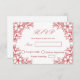 Una encantadora tarjeta de respuesta de boda (RSVP) para esa ocasión especial con gráficos florales ornamentados en cada esquina.