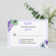 Tarjeta RSVP de boda de bonito hecha en mate blanco, con lavanda y marco, alrededor del borde exterior. Los gráficos de las flores coloridas decoran dos esquinas de la tarjeta. Personalice todos los campos de texto personalizado para que se ajusten a las necesidades de su boda. Hay productos que coinciden.