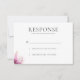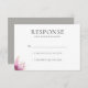 Una tarjeta de respuesta boda que se coordina con nuestra limpia, elegante y moderna invitación a la boda, con una flor de magnolia de color rosa sobre un fondo blanco crujiente y un elegante texto gris oscuro. El reverso está en gris sólido.