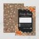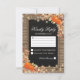 Tarjetas postales de respuesta de boda de cosecha de otoño rústico con un fondo de madera chic de campo, centro de pizarra negra, cuerda, calabazas de Halloween, follaje de otoño, bellotas, una lluvia de hojas de otoño, luces de hadas y una plantilla de rsvp personalizada.