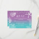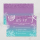 Tarjeta de respuesta de RSVP de boda de playa con estrella de mar y ombre lavanda y azul turquesa.