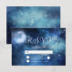 Diseño de acuarela celestial de galaxia con cielo lunar, con estrellas brillantes nocturnas, y diseño de luna brillante en un lujoso azul marino, azul pálido y toques de textura de color morado. Con Fuentes Modernas De Escritura De Tipografía. Un diseño mágico de moda - Tarjetas RSVP de boda personalizadas! ~ Revisa mi tienda para ver toda la suite boda para este diseño!