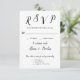 Salga de lo común con nuestra tarjeta RSVP de selección de menú 3 que pregunta: "¿Podrá o no celebrar con la feliz pareja?". Vea más tarjetas de respuesta RSVP de 3 opciones de menú en Heart Song Notes en Zazzle.