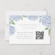 Esta hermosa tarjeta azul hidrangea floral boda con flores azul acuarela y su código QR personalizado. Utilice la plantilla para rellenar su información. La función "Personalizar más adelante" se puede utilizar para cambiar el tipo de letra (tamaño, estilo, color) y añadir más líneas de texto, cambiar el diseño y añadir texto al reverso.