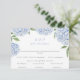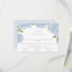 Esta hermosa tarjeta azul hidrangea floral boda con flores azul acuarela y su texto personalizado. Utilice la plantilla para rellenar su información. La función "Personalizar más adelante" se puede utilizar para cambiar el tipo de letra (tamaño, estilo, color) y añadir más líneas de texto, cambiar el diseño y añadir texto al reverso.