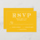 Tarjetas de respuesta RSVP de boda simples pero elegantes. Color amarillo dorado de estilo vintage con tipografía retro de madera radiante. Sólido plano para agregar los nombres de novias y novios, iniciales o detalles adicionales. Invitaciones coincidentes, sellos postales coordinados, accesorios y favores disponibles. Perfecto para temas formales o semiformales de boda, ceremonia civil informal moderna o bodas rústicas románticas con un toque sofisticado de clase — opción barata para novias con un presupuesto.