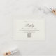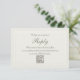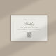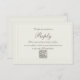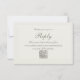 Un diseño de tarjeta de respuesta de boda de cuadro triple grabado en relieve y falso con un código QR, que es sencillo pero sofisticado, atemporal y elegante. Los colores son diferentes en tonos dorados, lo que le confiere un toque de color sobrio. Tenga en cuenta que el relieve en los marcos se crea a través de una imagen y que no aparecerá ningún relieve real en la tarjeta. Esta moderna tarjeta de boda grabado en relieve de imitación clásica es perfecta para parejas que prefieren la papelería tradicional boda formal y que aman el efecto grabado en relieve.