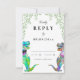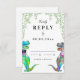 Traiga un rugido de emoción a su día de boda con esta colorida tarjeta de respuesta RSVP con temática de Dinosaurio, que incluye una divertida novia y novio T-Rex rodeados de vegetación botánica acuática. Con una tipografía caprichosa y moderna y plantillas fáciles de personalizar, esta tarjeta captura el espíritu divertido de tu historia de amor prehistórica. El exclusivo diseño de T-Rex, representado en ricos tonos marrones y eucaliptos verdes, es una encantadora mezcla de romance y naturaleza lúdica, todo traído a la vida por la talentosa artista Catherine Sweetman. Perfecto para la recepción de su boda o para la cena de ensayo, esta tarjeta RSVP forma parte de una completa suite boda que ofrece todo lo necesario para hacer a su boda tan memorable y alegre como su amor. ¡Dejen que este divertido y creativo diseño marque el tono para su celebración con temática de dino!