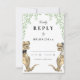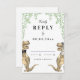 Traiga un rugido de emoción a su día de bodas con esta tarjeta de respuesta RSVP con temática dinosauria, que incluye una divertida novia y novio T-Rex rodeado de vegetación botánica acuática. Con una tipografía caprichosa y moderna y plantillas fáciles de personalizar, esta tarjeta captura el espíritu divertido de tu historia de amor prehistórica. El exclusivo diseño de T-Rex, representado en ricos tonos marrones y eucaliptos verdes, es una encantadora mezcla de romance y naturaleza lúdica, todo traído a la vida por la talentosa artista Catherine Sweetman. Perfecto para la recepción de su boda o para la cena de ensayo, esta tarjeta RSVP forma parte de una completa suite boda que ofrece todo lo necesario para hacer a su boda tan memorable y alegre como su amor. ¡Dejen que este divertido y creativo diseño marque el tono para su celebración con temática de dino!