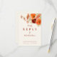 Tarjeta de respuesta incluida para boda de otoño con flores silvestres elegantes y modernas en acuarela, el complemento perfecto para tu invitación de boda. Con llamativas flores silvestres únicas pintadas a mano en estilo boho por la artista Catherine Sweetman, esta tarjeta captura la belleza del otoño con su elegante diseño de flores secas. La elegante escritura caprichosa en color naranja quemado y la tipografía moderna añaden un toque elegante, mientras que la paleta de colores terrosos de naranja quemado, terracota, rosa, púrpura, marrón y beige evoca la calidez de la temporada. La plantilla fácil de usar te permite incluir todos los detalles esenciales de la respuesta. Ideal para bodas de finales de verano y otoño, esta tarjeta de respuesta está diseñada para encajar perfectamente con un tema de boda boho y rústico.