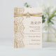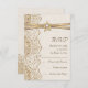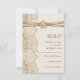 Elegante encaje blanco, cinta y flor en la boda de burlap tarjeta de respuesta RSVP con encaje blanco sobre lino burlap natural o hessiano con dos cintas de satín cruzadas y flor en beige con brillo metálico y una joya blanca. Texto en castaño. Hay que destacar que los encajes, las bujías, las flores y las joyas están todos "impresos" y no son verdaderas telas, gemas o cristal. Elegante, chic y chic, de diseño romántico y elegante, con una esencia rústica, es parte de un conjunto boda y es perfecto para una moda de campo o para un boda de primavera occidental, verano o otoño con paleta de colores neutros.