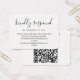 La forma más rápida y moderna de recibir su RSVP de sus invitados. Agregue su código QR que dirige a sus invitados a su sitio web dedicado al boda para que puedan responder fácilmente a su invitación.