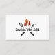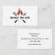 Tarjetas de visita con temática de barbacoa diseñadas con utensilios y un gráfico de llama y texto que puedes personalizar con el nombre de tu restaurante que aparece en la parte delantera. Simplemente reemplace nuestro texto con el suyo para un diseño personalizado que pueda personalizar en línea.