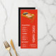 Una plantilla de menú colorida y linda para un restaurante japonés moderno o una fiesta de cena con tema japonés. Este menú lindo tiene una ilustración linda de sushi japonés contra un fondo rojo brillante personalizable. El texto se puede personalizar para satisfacer sus necesidades.
